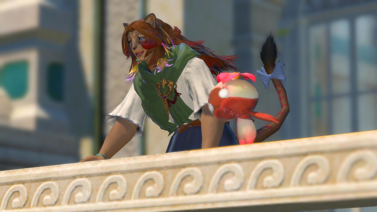 She snuck out with him one night to travel to Windurst again for the first time in 19 years. The wind in her fur as they traveled by boat, Annichi felt the weight of being a Duchess roll off her shoulders with the movement of the waves. Their arrival was quick into Windurst as they arrived at the dock, disembarking soon after into the forest and seaside town. Annichi felt her heart race under her gown, ears and tail moving to an instinctual rhythm before running off into the town.